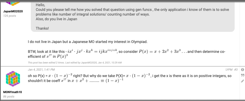This is not a very tough problem, but the reason im so proud of myself for solving this is, i think before one of the ioqm’s ; i wanted to read about generating functions (just checked, it was the first ioqm)
