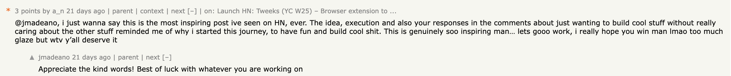 I was playing around with tweeks (this yc company