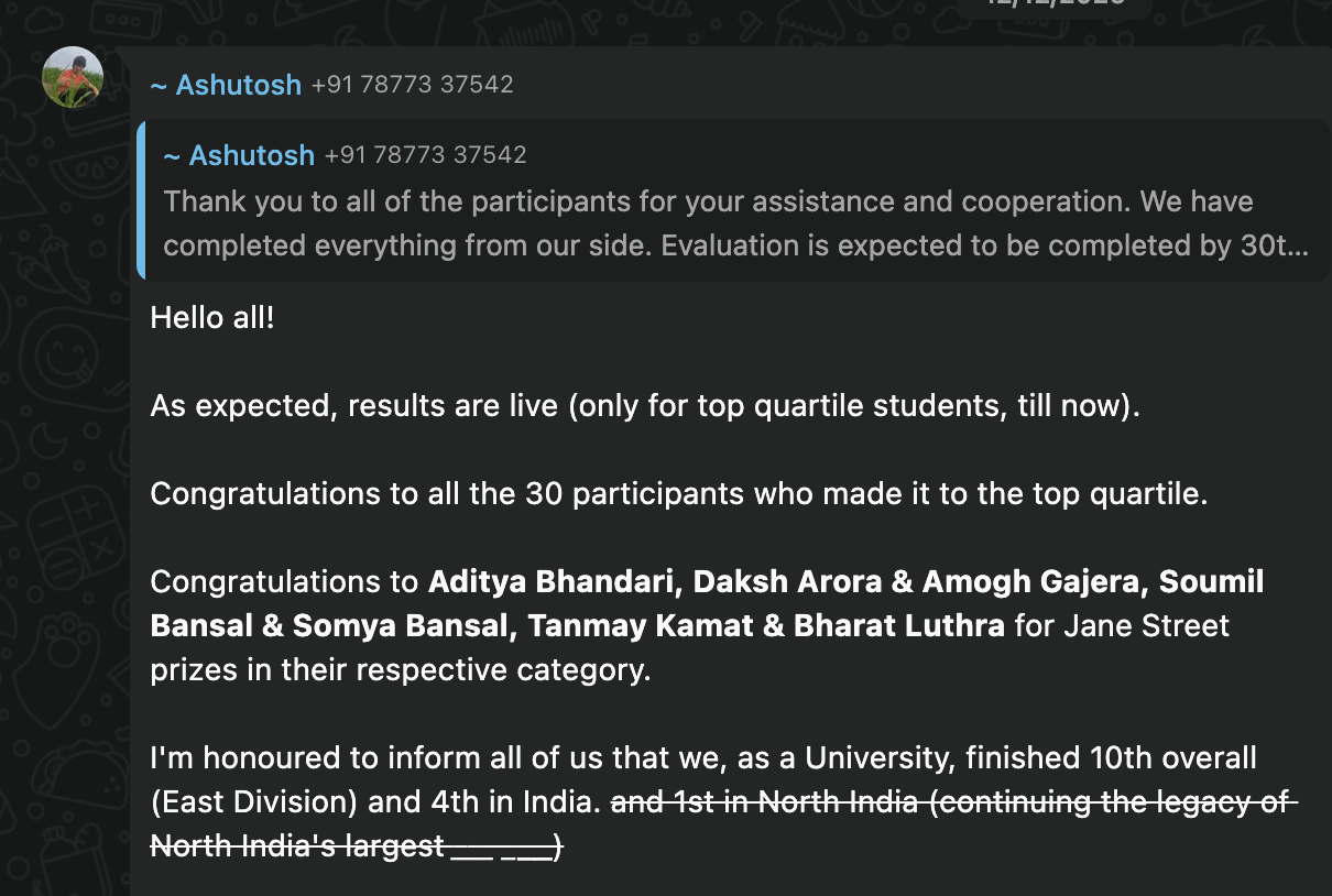 Basically; 34th overall; 6th in India; 1st at iit delhi.